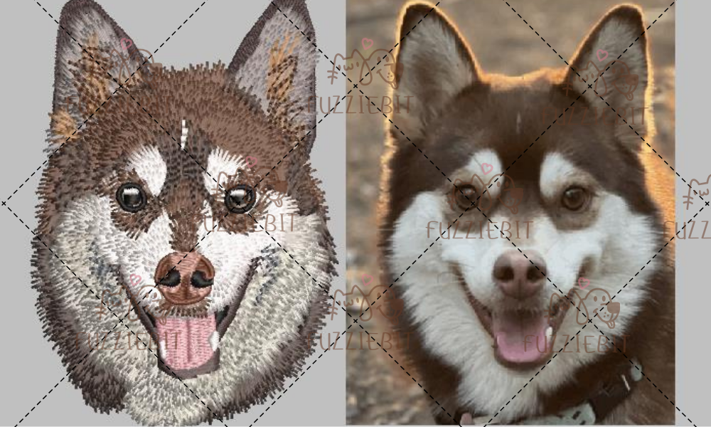 Turn your beloved pet’s photo into a custom embroidery design file — ready for you to stitch on your own machine. 🐾